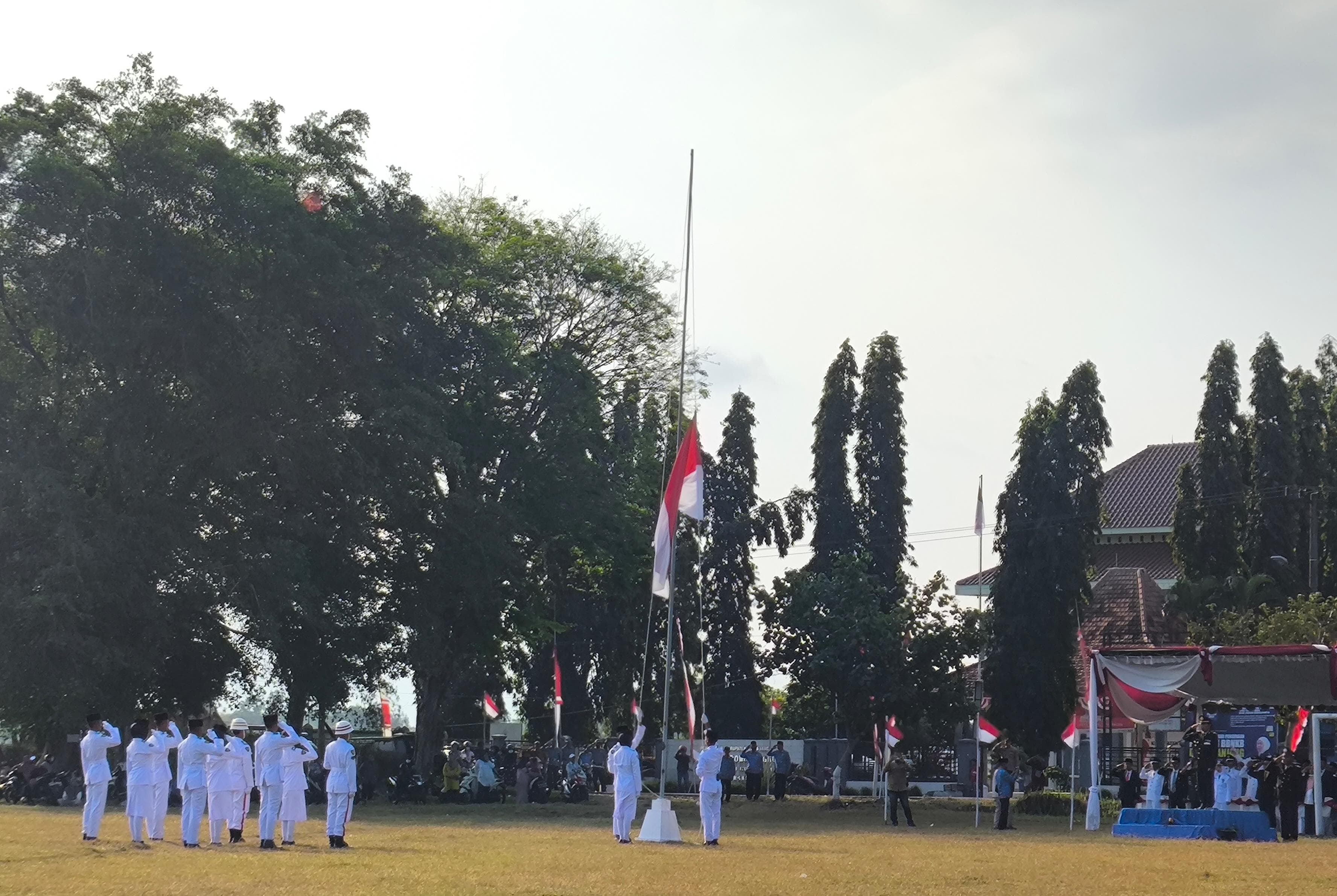 Rowokangkung – Upacara penurunan Bendera Sang Saka Merah Putih dalam rangka peringatan HUT ke-80 Kemerdekaan Republik Indonesia tahun 2025 berlangsung dengan khidmat di ...