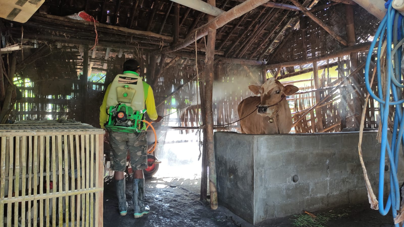 Pemerintah Desa Sidorejo bersama babinsa setempat melakukan antisipasi dan pencegahan merebaknya wabah penyakit mulut dan kuku (PMK) dengan memberikan cairan pembunuh virus atau ...