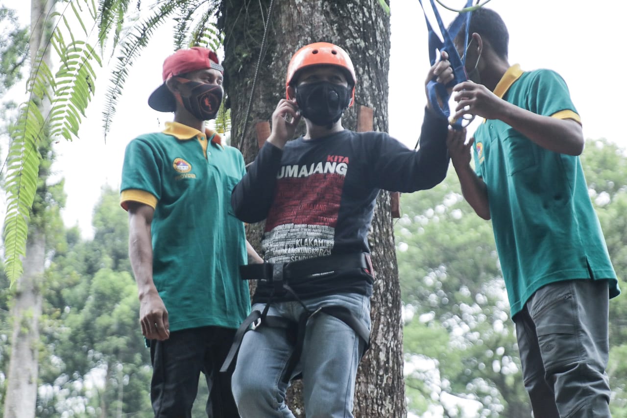Bupati Lumajang, Thoriqul Haq meresmikan Wahana Outbound Raja Giri yang berlokasi di Wanawisata Siti Sundari, Desa Burno, Kecamatan Senduro, Minggu (25/20/2020). Dalam sambutannya, bupati ...
